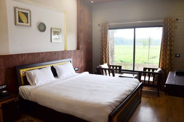 Our Teesta Cottage is the one with the Tea Garden View. You can relax on your bed and view the vast expanse of the Tea Estate from the comfort of your room. It consists of four Deluxe Bedrooms.